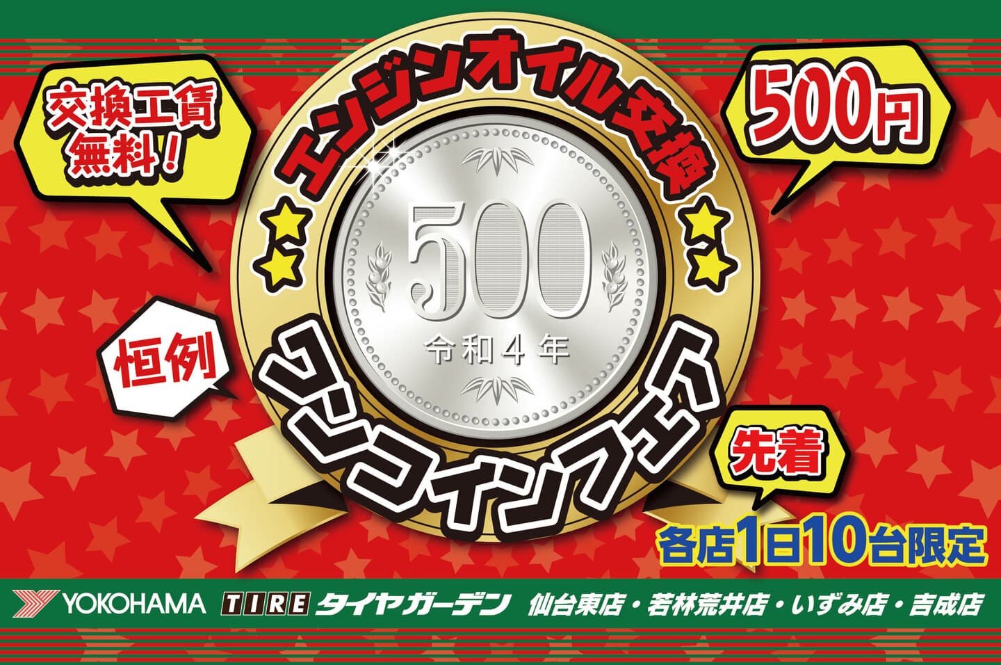 ※国産ガソリン車1台分のオイル交換を500円(税込)にて実施いたします。